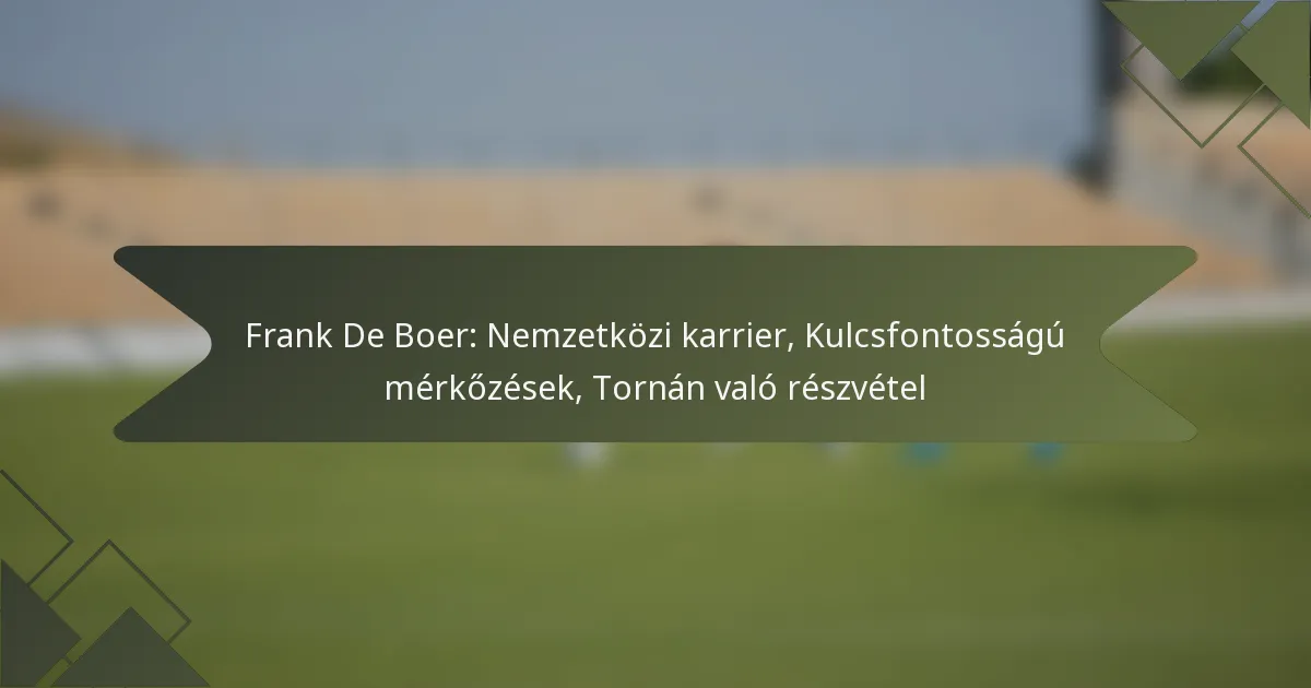Frank De Boer kiemelkedő nemzetközi karriert futott be a holland labdarúgó-válogatottal 1990 és 2004 között, több mint száz válogatott mérkőzésen lépett pályára sokoldalú védőként. A FIFA Világbajnokságon és az UEFA Európa-bajnokságon játszott kulcsfontosságú mérkőzései kiemelték védekezési képességeit és vezetői kvalitásait, maradandó hatást gyakorolva a holland labdarúgás történetére.